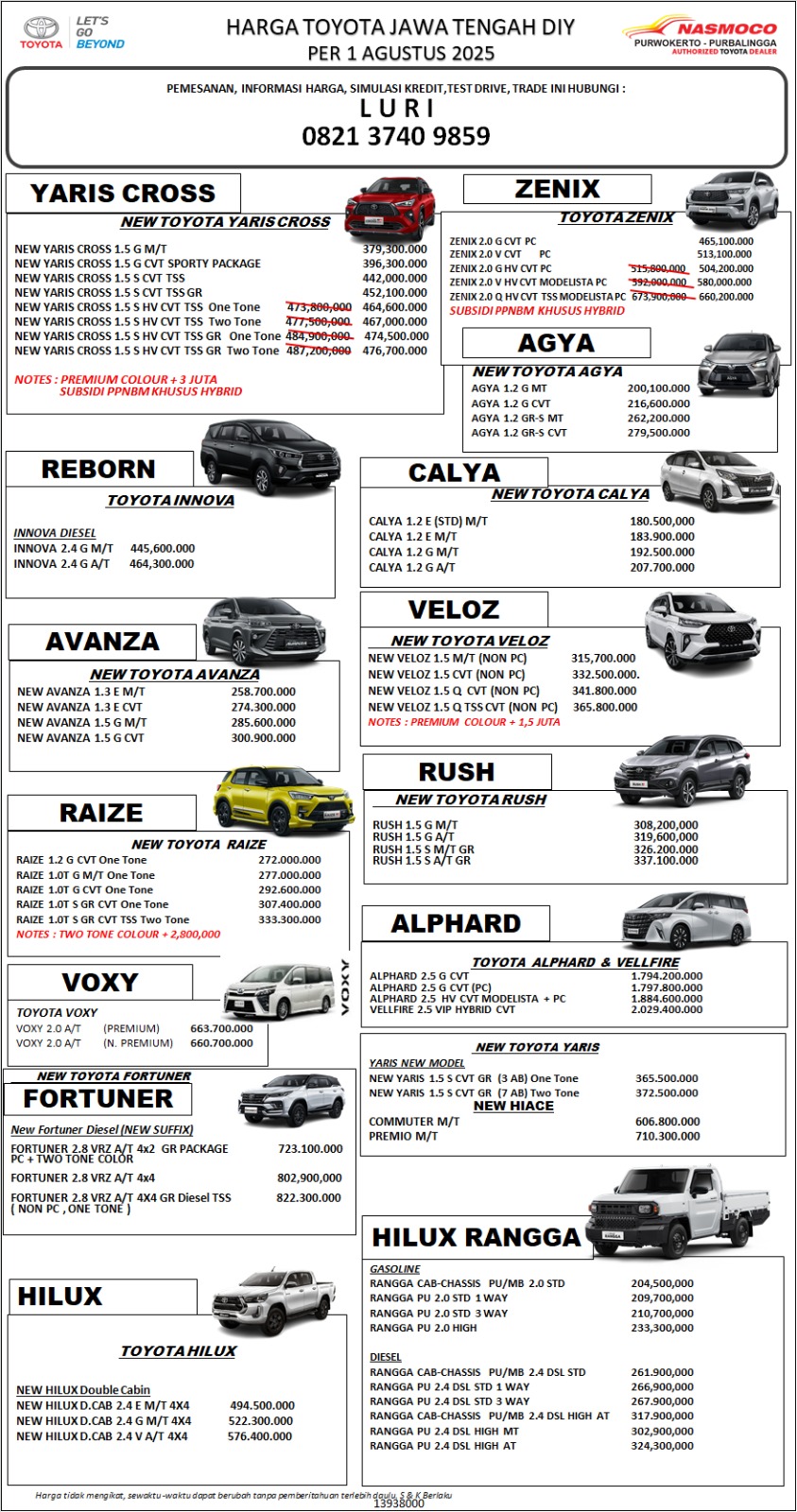 Untuk Pembelian Product Toyota Atau Layanan Toyota Lainnya , Segera Hubungi Kami disini